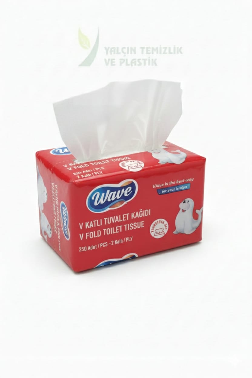 Wave V Katlı Tuvalet Kağıdı, yoğun kullanıma sahip alanlar için özel olarak üretilmiş, 250 yaprak, 2 katlı, V Fold (V katlı) yapıya sahip profesyonel tuvalet kağıdıdır.